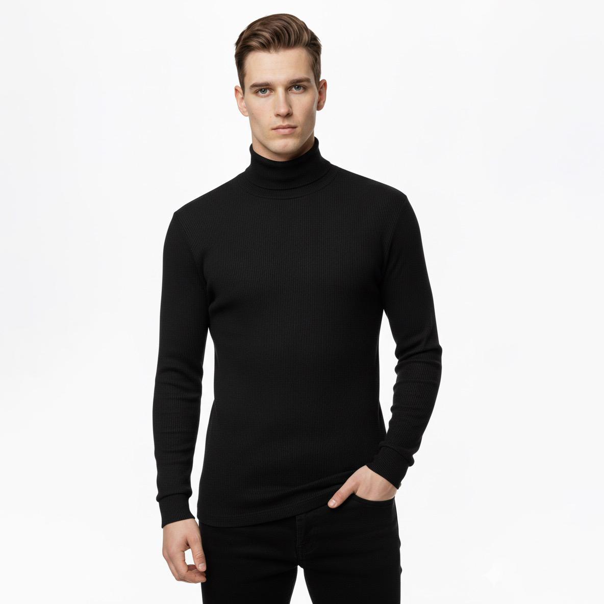 Classic Ribbed High Neck for Men-Black
