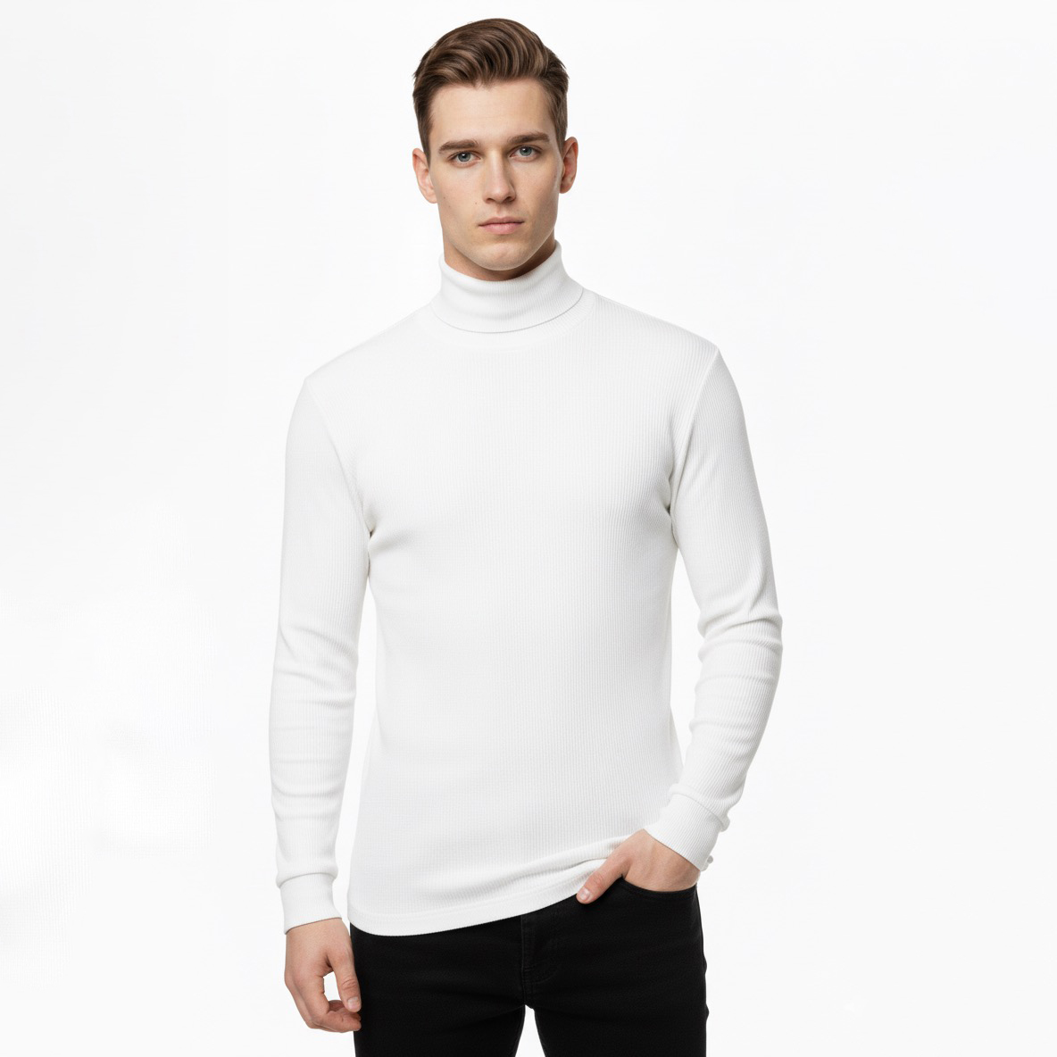 2 Psc Ribbed High Neck T Shirt -Black+White